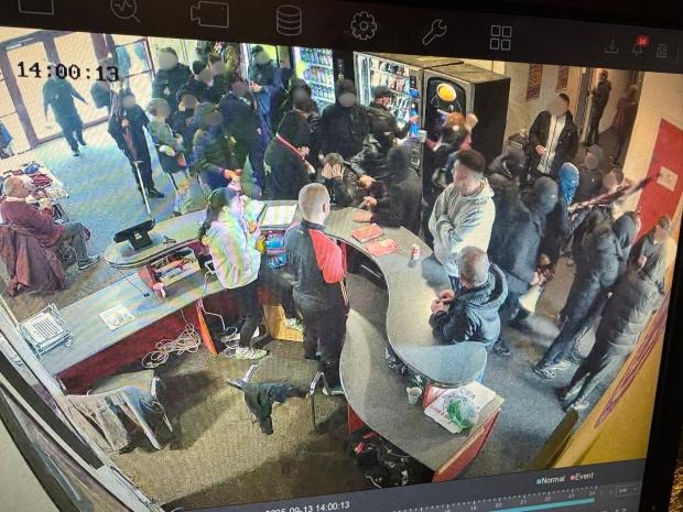 Two members of staff were “assaulted” during the terrifying incident, which saw a large group, wearing black clothes and balaclavas, burst into the building and force their way to the grass pitch, carrying poles and corner flags, which they had ripped out of the ground earlier.